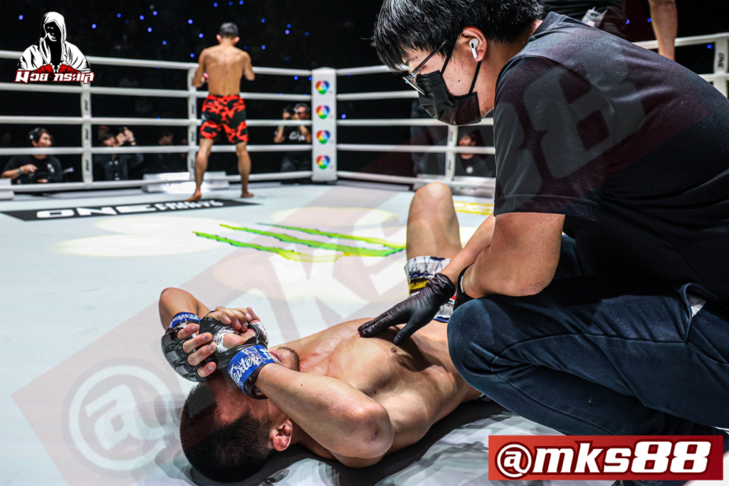 ในการแข่งขัน MMA รุ่น 128 ปอนด์ คู่ที่สองของศึก ONE ลุมพินี 98 นักสู้จากอุซเบกิสถาน อาวาซเบก โคลเมียร์ซาเอฟ (ชุดแดง) สามารถเอาชนะ โบลาต ซามาเบคอฟ จากคาซัคสถาน (ชุดน้ำเงิน) ด้วยการล็อกซับมิชชัน Guillotine Choke ได้สำเร็จในเวลา 1:31 นาที ของยกแรก